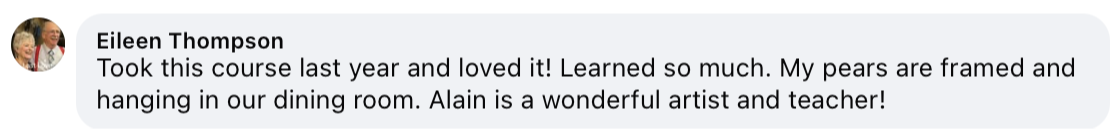 "Alain is not only a gifted painter but a gifted instructor and teaches in a clear and effective manner."